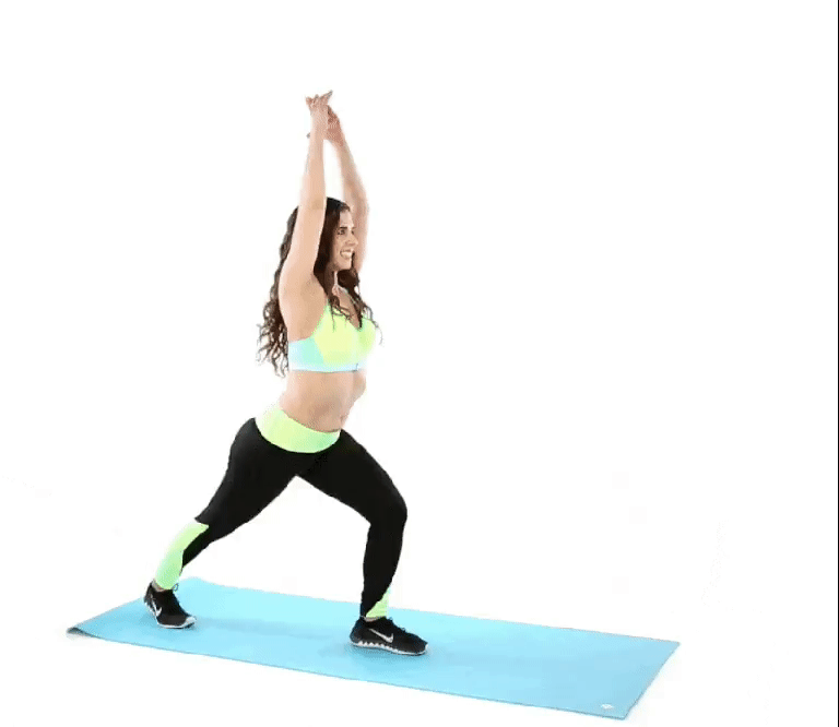 雙手交握,蹲下時雙手往上伸展,記得腳尖要顛,蹲下與站起來的速度不要太快。