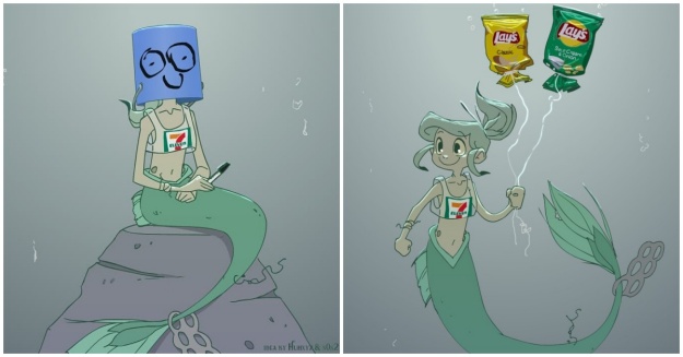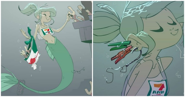 小美人魚吃垃圾、把塑膠袋當衣服穿?德藝術家用「現代版美人魚插畫」暗諷海洋污染