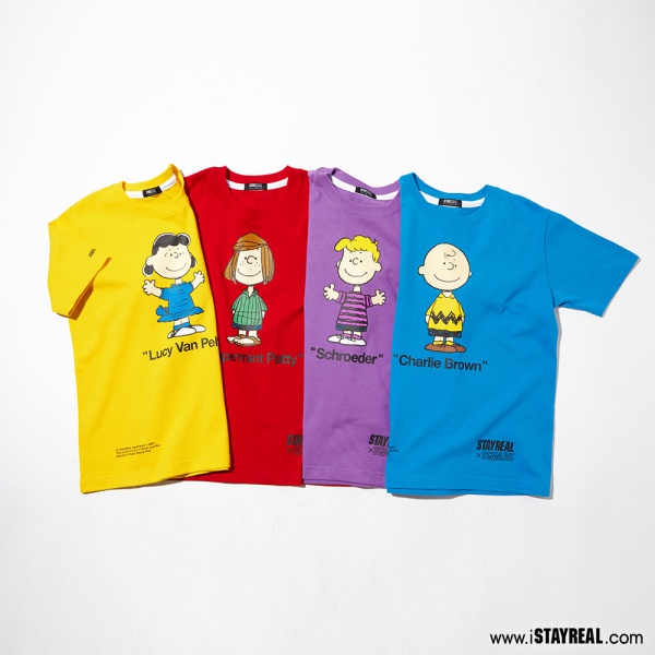 STAYREAL聯名系列第二彈找來史努比的4位超人氣好友—露西(Lucy)、查理•布朗(Charlie Brown)、佩蒂(Patty)、謝勒德(Schroeder),搭配人物個性設計不同色調的人物T-shirt!