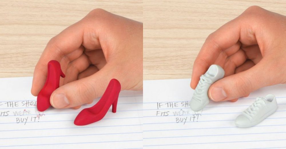 最後介紹鞋子款橡皮擦,共有紅色高跟鞋與小白鞋兩種。不過雖然這兩款橡皮擦造型可愛,但似乎比較適合拿來當擺飾?細長的設計感覺有點不符合人體工學,擦一擦手可能會酸。以上7款造型特殊的橡皮擦,大家覺得哪款最讓人視覺衝擊呢?快跟妞編輯分享吧!(個人覺得大腦款很衝擊)