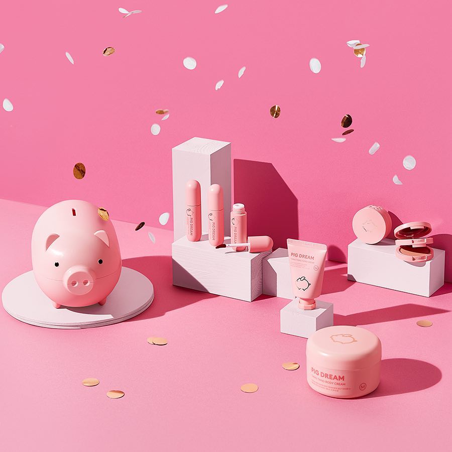 迎接2019年豬年,韓國開架美妝MISSHA、innisfree不約而同推出粉紅豬撲滿來萌大家!除了超療癒的撲滿外,還有超美雙層眼頰彩盤、唇釉等周邊商品,印上粉嫩豬包裝真的太可愛啦!