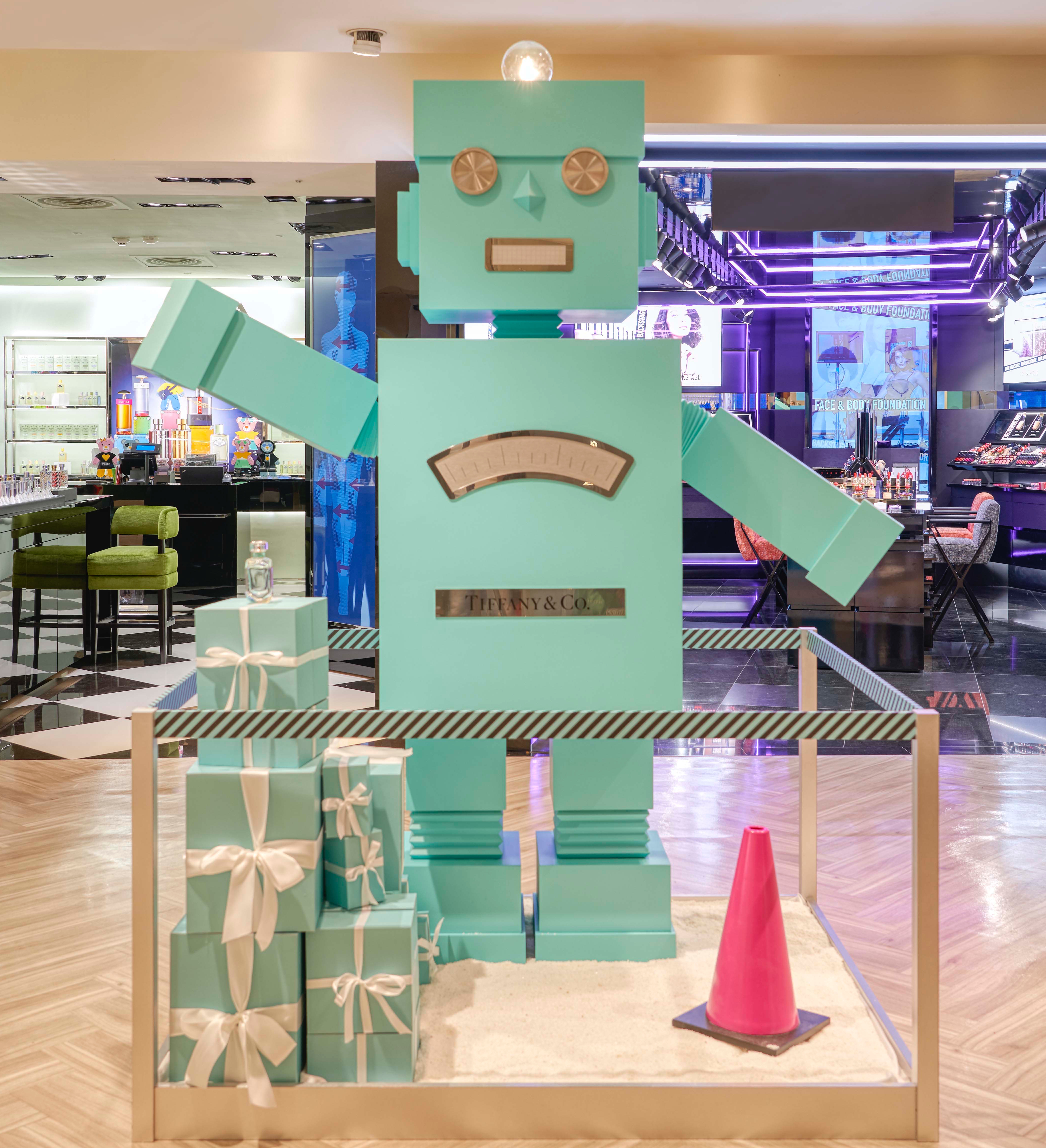 今年聖誕節Tiffany&Co.以機器人為主題,打造出1:1的巨型藍色機器人陳列裝置藝術,於忠孝SOGO 二樓手扶梯處展出,即日起2018/12/23(日)只要與巨型機器人合照上傳Instagram並#ATiffanyHoliday、#TiffanySOGOTaipei 即可於二樓Tiffany&Co.香氛專賣櫃兌換針管香氛乙份,每日限量30份,數量有限,兌完為止。
