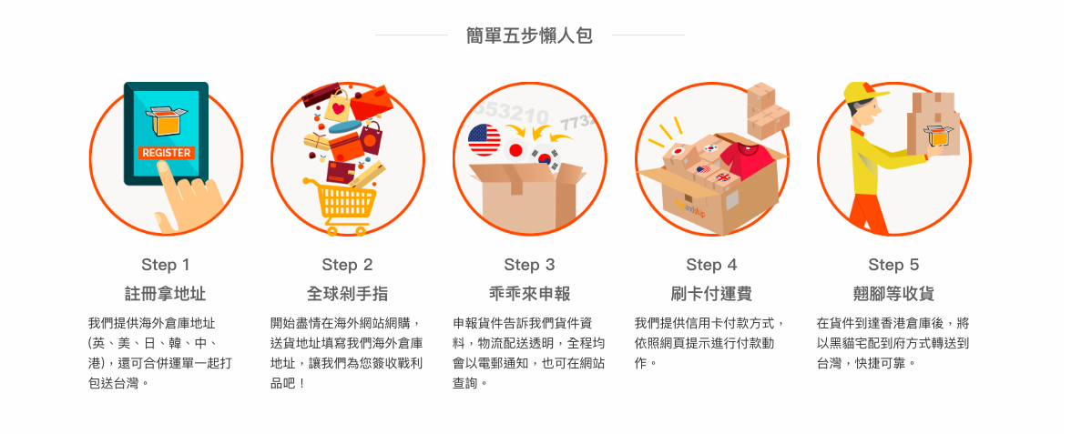 (1)註冊拿地址:加入會員後可以取得各國海外倉庫的地址!