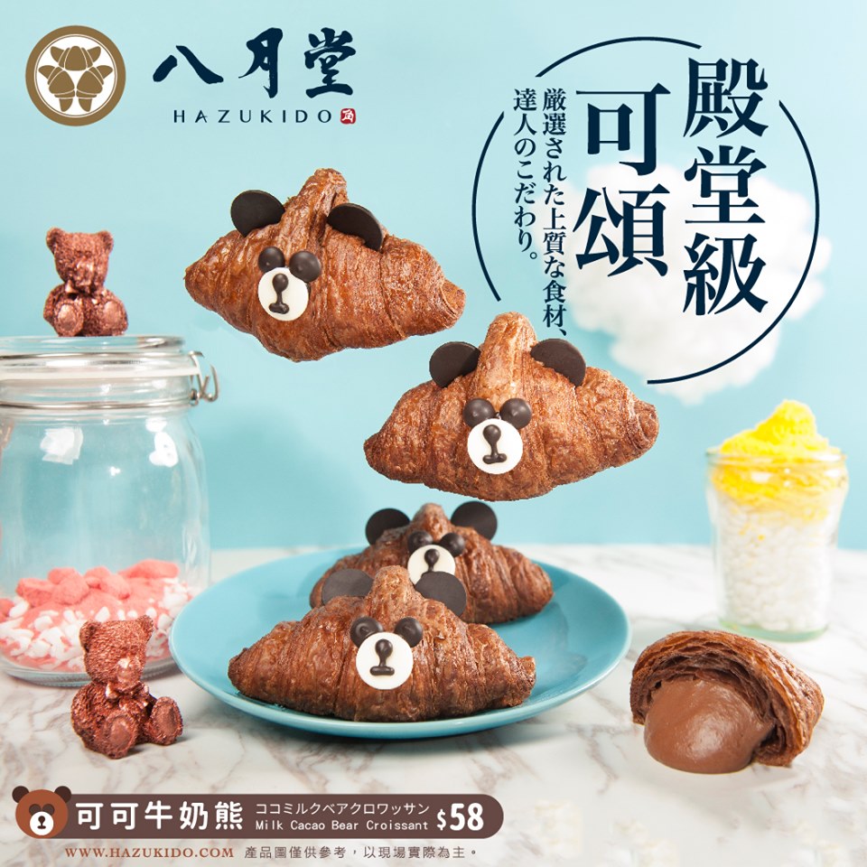 7月首推要介紹給各位的新品就是超卡哇伊的「可可牛奶熊」啦!這款以經典的蜂巢可頌當作基底,接著灌入滑順爆漿的可可牛奶餡,上頭再用巧克力妝點成俏皮又討喜的小熊模樣,不僅在視覺上夠吸睛,濃郁的巧克力口感也能讓人能吃得很滿足。