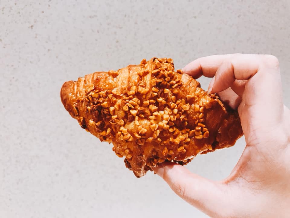 接著來到讓妞編輯最驚訝的兩款奢華可頌新品。第一款是只在京站時尚廣場B3獨家販售的「松露白醬松葉蟹」,有沒有光聽名字就夠霸氣!(笑)在蜂巢可頌中夾入一整隻彈牙肥美的蟹螯,混合頂級松露白醬後,灑上香濃帕瑪森起司,連舌尖都能感受到大海的鮮甜吶~