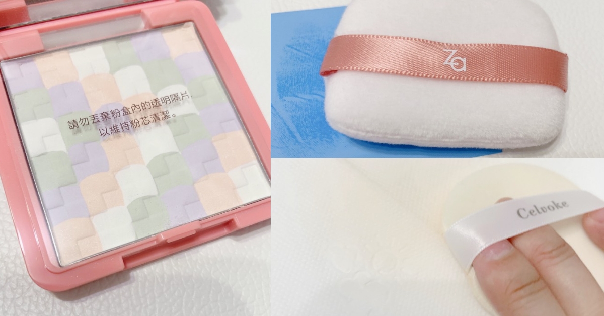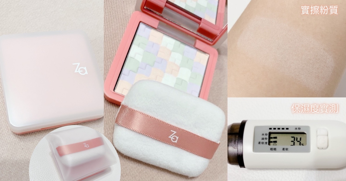 Za最新上市的這款四色編織蜜粉餅超級可愛吸睛!簡直是把Za美白防曬霜家族的白/綠/紫/粉四色校色功能都濃縮在一盤了!其中的粉色還帶有閃耀珍珠光澤,實擦提亮修飾蠟黃&毛孔的效果很好,彷彿開啟美肌濾鏡妝感!上市首批限量組合還贈送輕柔定妝蜜粉撲及粉撲袋超貼心(妞編輯覺得這款粉撲好膨軟&好像一顆小枕頭唷超可愛~)實測控油力還不錯!定妝遮瑕力是屬於比較白皙薄透的類型!