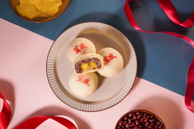 萬波和顏新發經過多次的研發與測試,將飲品「紅豆粉粿鮮奶」結合傳統月餅,內餡使用手工製作香甜綿密的紅豆沙,保有部分紅豆的顆粒口感,包裹著金黃色的彈牙粉粿,最外層則是帶有淡淡奶香的餅皮,上頭印有「萬波」字樣!