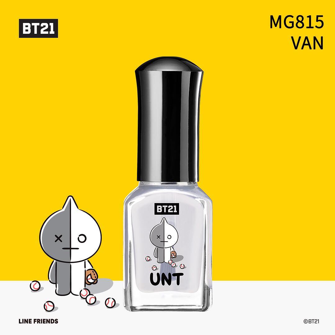 最萌團體宇宙明星BT21首度與台灣指彩UNT合作,針對不同角色各設計一款代表色的指彩,瓶身上有7位充滿魅力的代表人物加上守護BT21的宇宙機器人,瓶身背面還有角色名字的簽名,根本逼人全部包色啊!