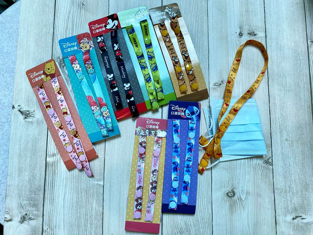 已在歐美、韓國掀起流行的口罩掛繩(點我介紹),降低了取下口罩會遺失的風險,登場角色共有米奇、奇奇蒂蒂、三眼怪、史迪奇、維尼、小美人魚與公主系列。除了用在口罩上之外,掛在識別證上也OK!