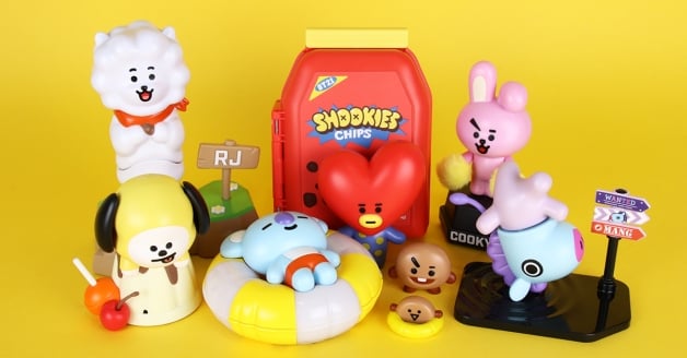 不用飛韓國就可以買到「BT21冬季系列新品」,包含BT21冬季造型站姿絨毛娃娃、文具等商品通通都有,還有「BT21宇宙明星互動玩具組」 ,每隻NT$850元,有在收集公仔的妞妞們相信這組必須收好收滿,看看我們頭轉的MANG和可愛的CHIIMMY,不買嗎?