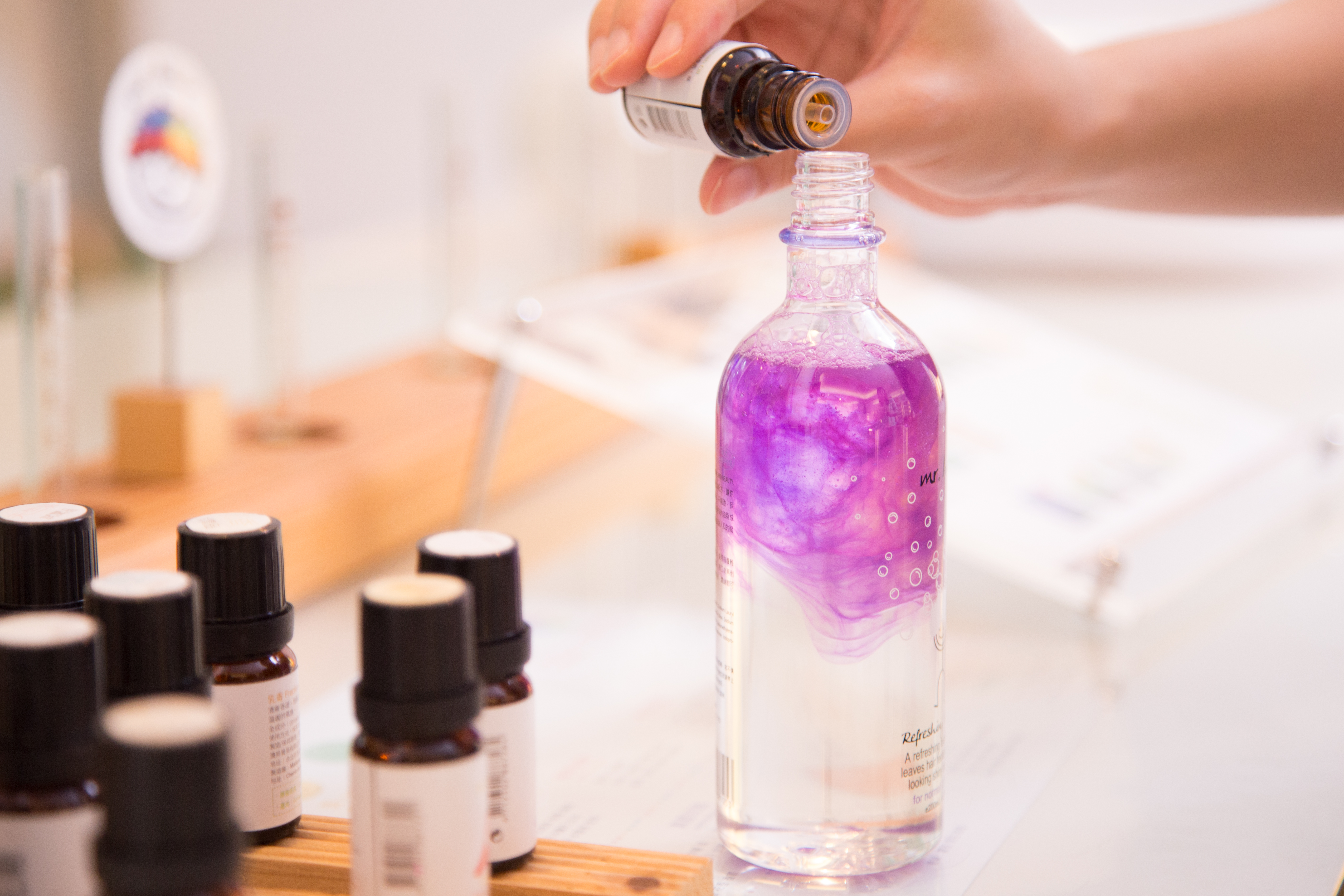 調好香味之後當然就是調色調啦~這個步驟不得不說妞編輯真的手、很、殘!因為色素是用滴管滴入,所以很容易不小心滴太多讓原本要的色調走鐘~身為過來人的妞編輯建議想要讓洗髮精呈色透明一些的女孩,下手可以一滴一滴地慢慢來,如果想要鮮艷又強烈的色系則可以滴入足量的色素,成色效果會非常好喔!
