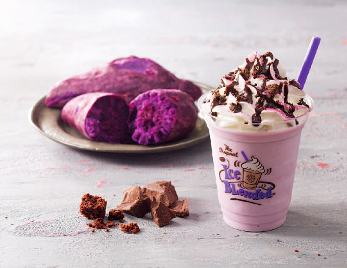 其實這款紫薯冰沙去年就已經推出過了,不過因為實在太受歡迎,今年秋天再度重出江湖。帶著濃濃秋天味道的紫薯冰沙,以牛奶為基底,加上來自宮古島的紫薯,混合鮮奶油打成冰沙,最後擠上巧克力,讓風味更加優雅。淡紫色的冰沙看起來好夢幻啊!
