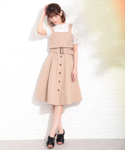 這件杏色排釦連身洋裝真的物超所值,只要變化內搭的長短薄厚就四季皆能穿!中間的腰帶設計既能拉高身形比例還能突顯小蠻腰,而下擺自然的A字垂墜也能有效遮蓋大腿肉,梨形女孩絕對要收!