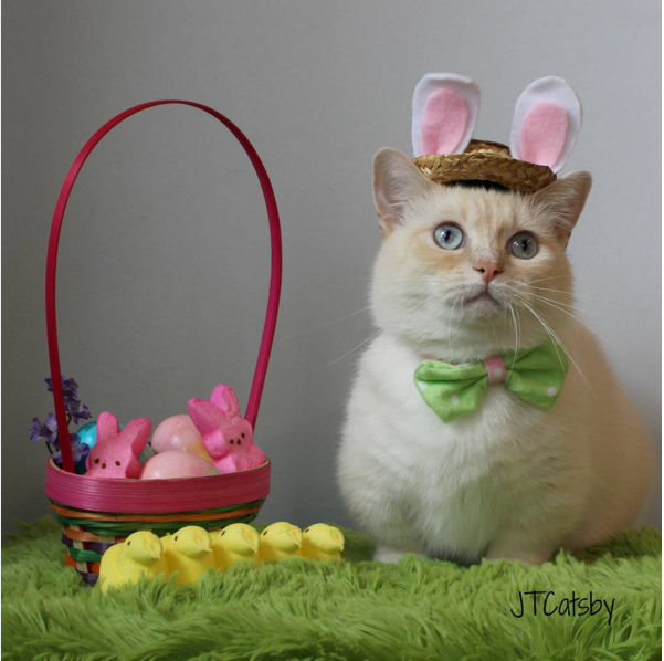 復活節的時候,JT Catsby被扮成一隻兔子,誰家的可愛的短腿兔呀~