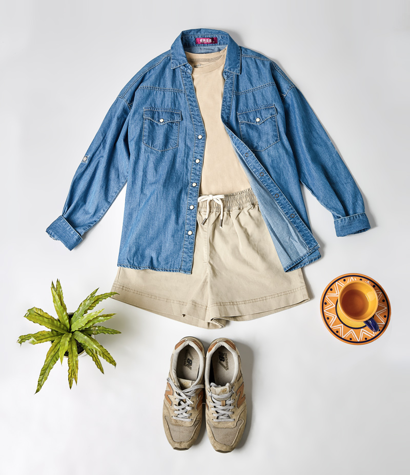 用輕柔的裸色帶出春夏季節感,上下半身使用同一色調,讓整體質感更加分。想要增加層次感,可以搭配丹寧襯衫做外搭,讓整體視覺效過更加立體,並且藉由投入休閒氛圍,讓整體好感度大幅提升!