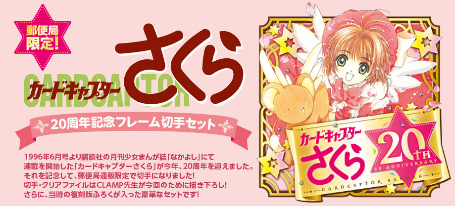 Source:「カードキャプターさくら20周年記念フレーム切手セット」発売のお知らせ -カードキャプターさくら公式サイト-,郵便局限定!カードキャプターさくら20周年記念フレーム切手セット ~郵便局のネットショップ~