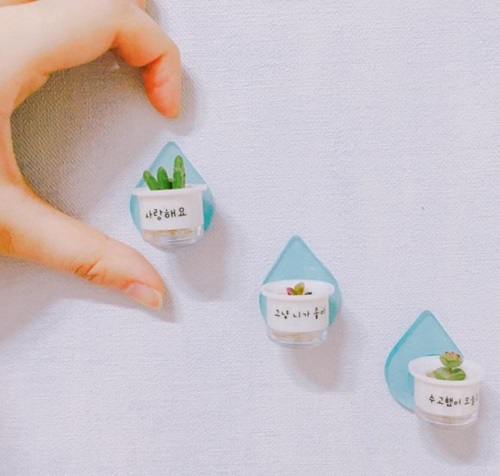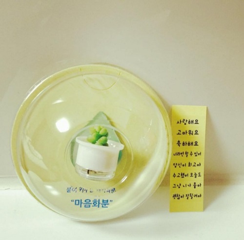 這群流行韓國辦公桌的迷你多肉盆栽稱作마음화분,姑且稱它為「心意花盆」好了,因為這群花盆吸引人的不僅是超迷你size,還因為它們同時具有「傳達心意」的療癒力。