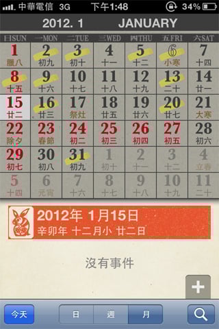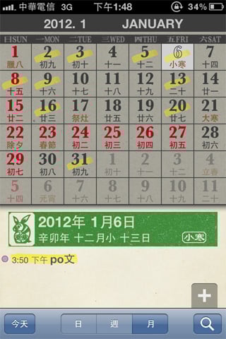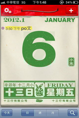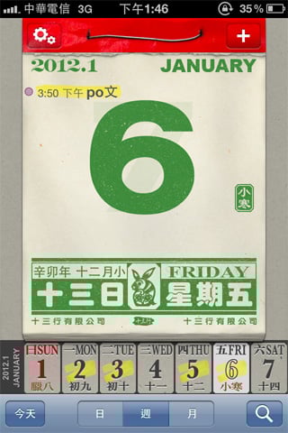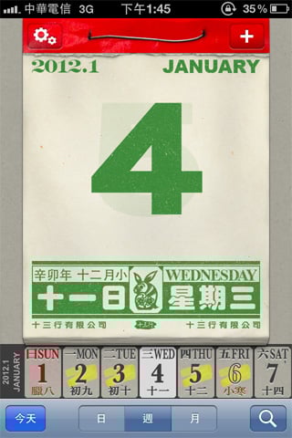 重要的節氣也不會被遺忘,由於操作十分簡單,下載給老年人使用也能輕鬆上手,幾乎模擬真實日曆的樣式,連薄薄的紙張讓隔天的數字隱隱約約透出來的效果都做出來了!看來設計者一定是個傳統日曆愛用者!