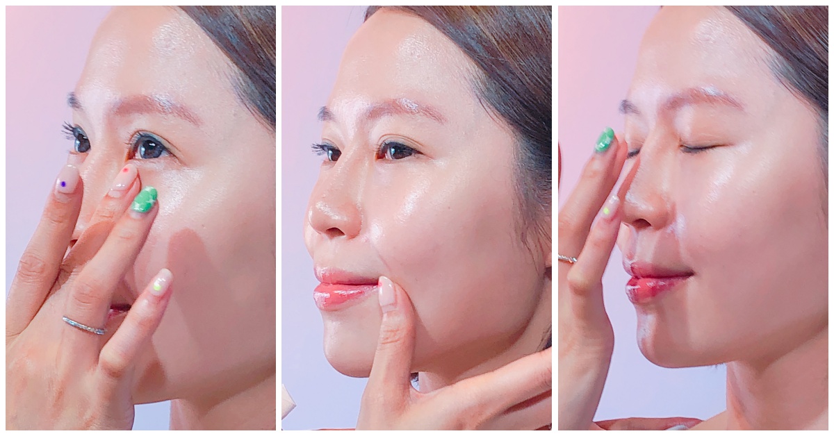 步驟3.若沒有要額外上底妝,可再取少量防曬素顏霜加強按壓眼睛下方、法令紋與木偶紋以及T字部位即可,容易出油的人可以再輕刷一層蜜粉。