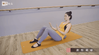 首先,先坐在瑜珈墊上,雙腳打開與肩同寬,將彈力球或抱枕放至尾椎處。深吸氣,用腹部的力量將身體往上抬,雙手在胸前抱圓保持平衡。