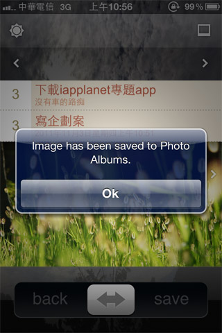 作品完成後,把下方的拉桿向右滑(Save)就會幫你將圖片存到照片庫中使用了!