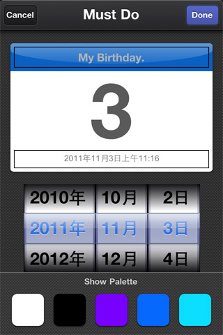 Must do是針對重要事件的特別提醒,日曆上的顏色和文字也都可以修改。