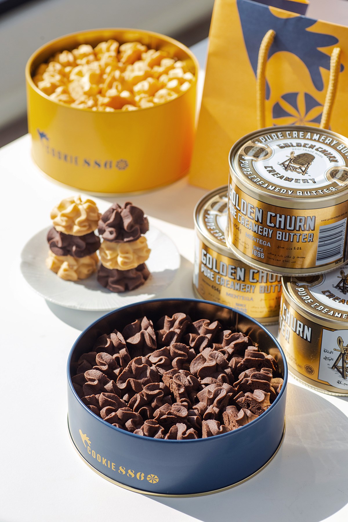 曲奇餅每日新鮮現烤出爐,使用金桶奶油,百分百的紐西蘭草飼的牛奶製作而成,在口中化開鬆酥而不甜膩,僅有原味和可可兩種作為COOKIE886販賣的主要商品,捨去譁眾取寵的口味,卻是讓人一口一口停不下來的獨特滋味,正是創辦人所期望,耐吃又經得起時間考驗的曲奇餅,並期許能成為臺灣代表性的伴手禮。