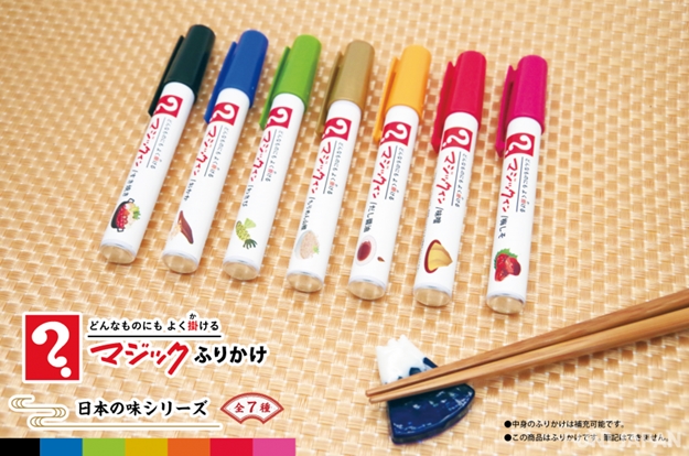 一開始推出的關西口味系列,之後陸續推出福岡、北陸、東海地區限定等超多系列,這次更是集結代表日本的調味料,推出日本之味,包含山葵、壽喜燒、柴魚、味噌等,一套共7支。買個鉛筆盒幫它們找個家,中午吃飯時將這組香鬆馬克筆一字排開,全場目光一定都在這。