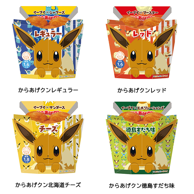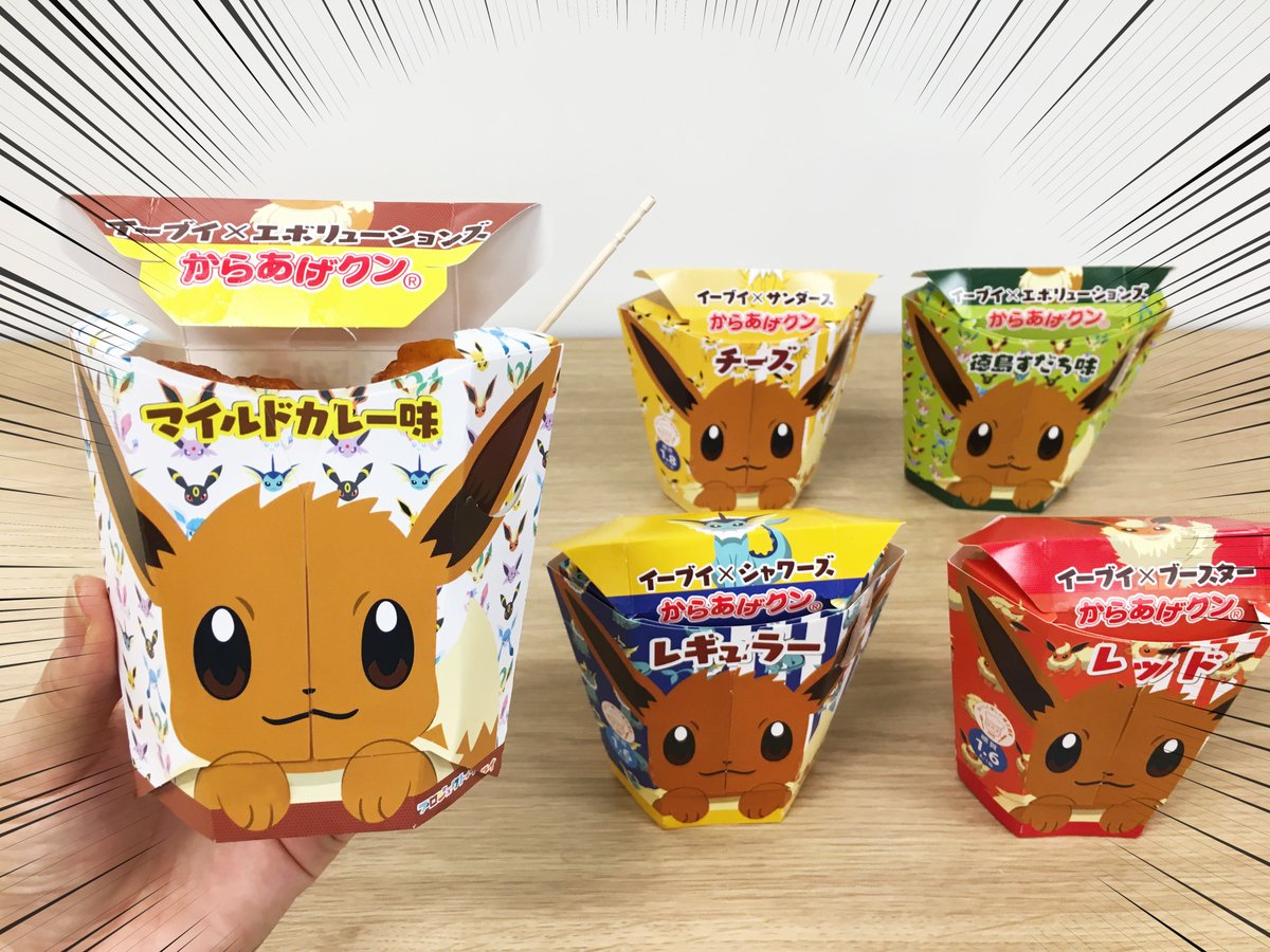 日本LAWSON和Pokemon聯名,將包裝上的招牌炸雞君換成了伊布,不過請放心,裡頭的原料不是伊布,而是咖哩口味的炸雞塊(笑)這款炸伊布炸雞塊據說使用了8種香料,呼應伊布有8種進化型態,是一個伊布家族最後通通在肚子裡團員的概念?!!!(大驚)