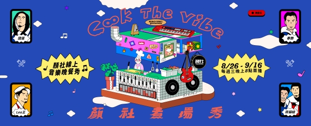 顏社煮場秀各集首播時間分別為「夜貓組 X VG The Seafood Bar:8月26日」、「春艷 X 泰街頭:9月2日」、「LEO王 X 貓下去敦北俱樂部:9月9日」和「國蛋 X Everywhere burger club:9月16日」,周三晚間八點準時開始,四場融合音樂和食物的演出,將呈現獨具風格的「五感饗宴」!
