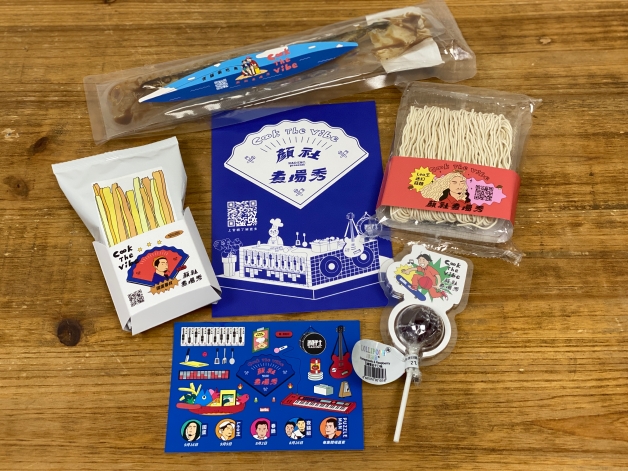 限量發售的顏社煮場秀餐盒主要有兩款,分別為「邊吃邊看半套餐」和「有吃有穿全套餐」,邊吃邊看半套餐,限量1,900份,內含有代表顏社藝人風格的小食,像是夜貓偷吃魚(秋刀魚)、春艷好棒棒(棒棒糖)、Leo王迷幻菇麵(乾拌麵)和國蛋薯叔(鹹蛋黃薯條);有吃有穿全套餐,限量500份,除了四種零嘴之外,還有Cook the Vibe 顏社煮場秀的專屬圍裙及T-shirt!