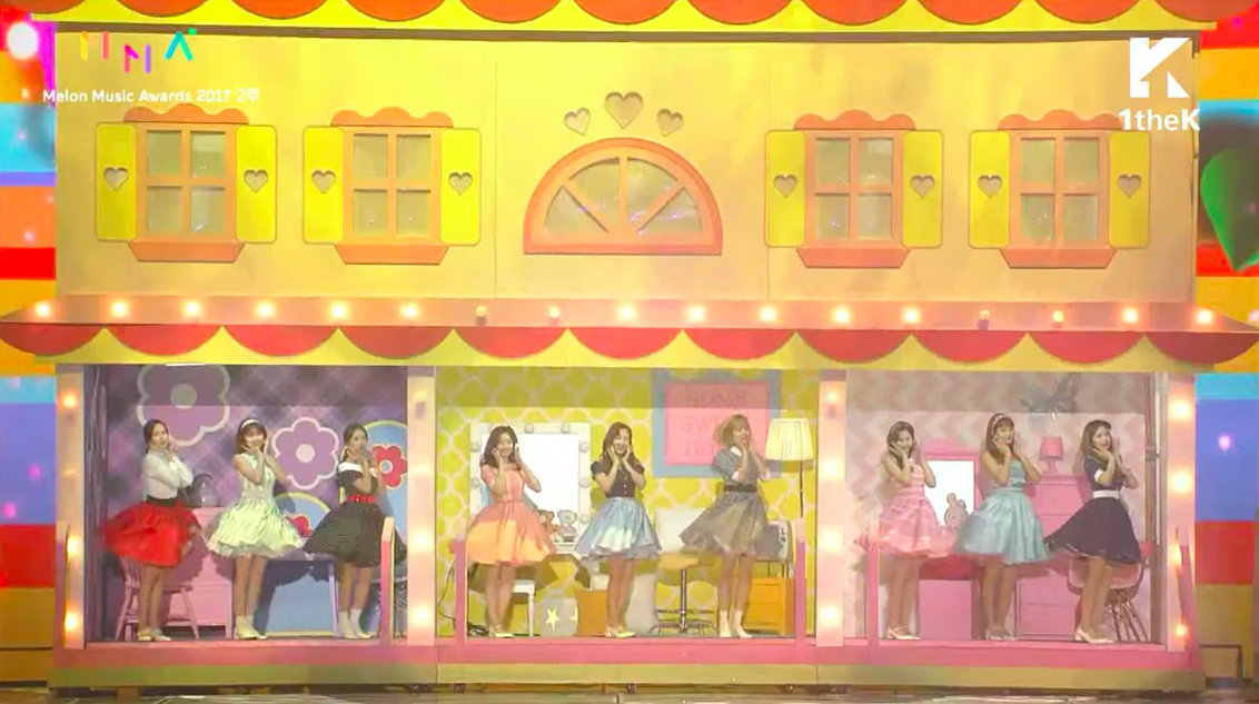 TWICE今天表演可是讓人超級驚豔啊~開頭影片裡,9位成員打扮得像洋娃娃一樣,之後出場竟然是在大型玩具屋,澎澎裙和復古造型超級吸睛,實在太可愛啦!