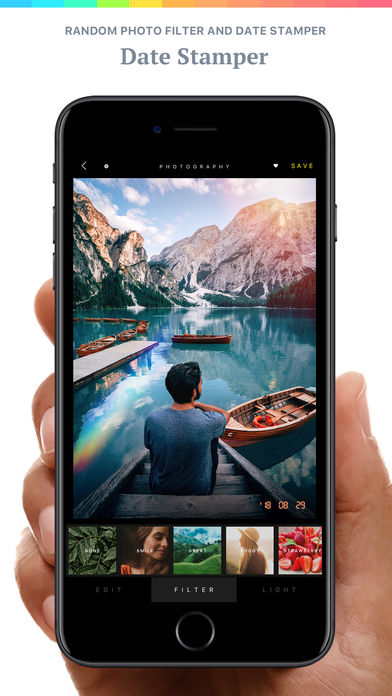《Rainbow》除了擁有少女最喜歡的粉色濾鏡之外,還有彩虹、泡泡、星芒、雲煙等特效,套用在照片上之後還可以調整效果的大小與位置。手機小姐覺得這是一款很適合用在遊樂園裡面的濾鏡App,把照片變得超夢幻!