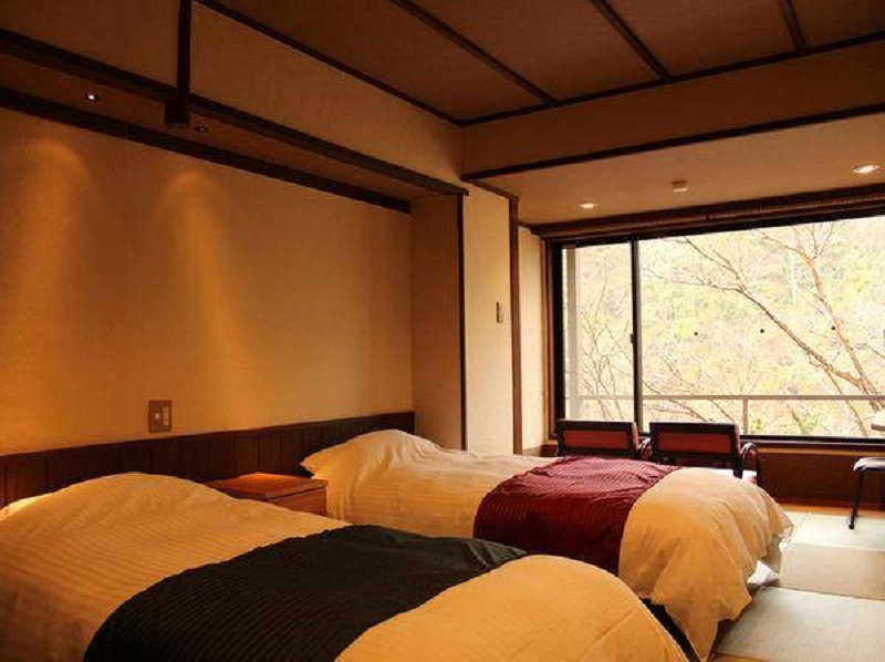 「紅葉家本館高雄山莊」是一間有開放的露天展望浴池、能夠感受到季節變化的溫泉旅館。除了可以飽覽高雄四季變化的模樣,以清潼川捕獲的鮎和京都牛等里山當地食材做出的料理也是一絕。整體客房有統一的現代和風的氛圍,相信您能在在此度過愜意的時光。