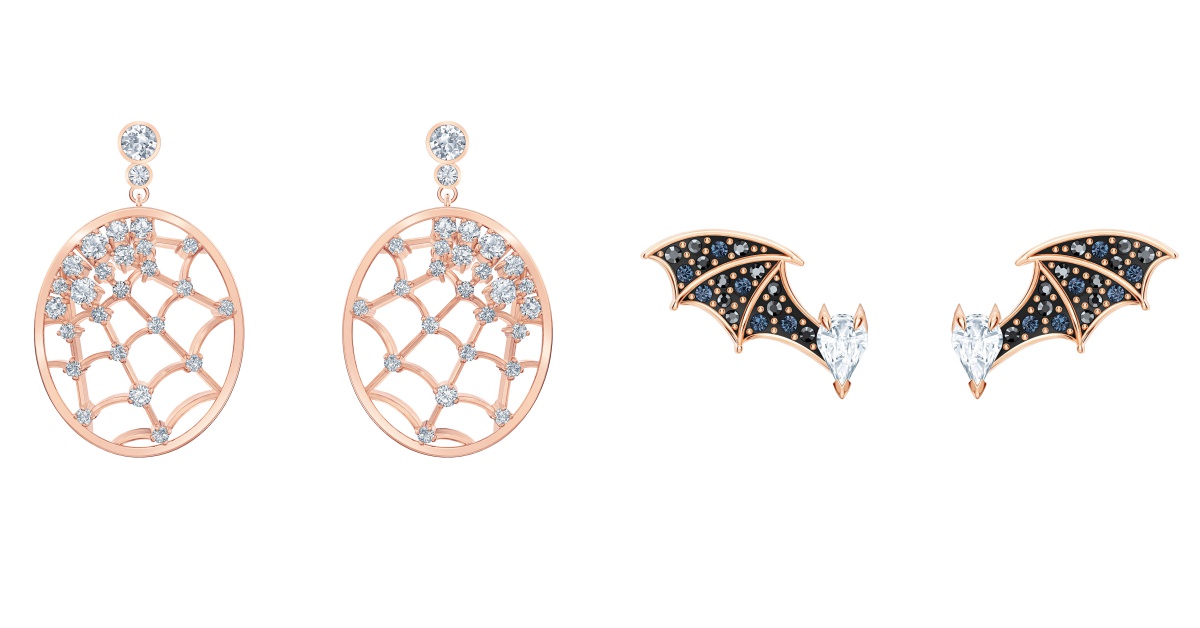典雅溫柔的水晶珠寶品牌Swarovski在萬聖節也展現出品牌很不同的一面,以蝙蝠及蜘蛛網打造了一系列華麗的項鍊、耳環等配件,最適合在大家的萬聖扮裝當中加入一點可愛華麗的吸睛元素,小巧的尺寸其實日常配戴也是很OK!