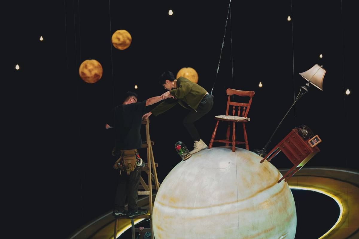 不過,吊鋼絲新鮮歸新鮮,因為穿戴專業攀岩護具和裝載鋼絲的過程繁複,如果想去廁所,小魏魏嘉瑩就得爬下近兩公尺高的木梯,全部得重新來一次後再登上星球,貼心的小魏魏嘉瑩一上去就自制的不太喝水,在星球上待滿近五小時沒有下來,連工作人員要拿水補妝都要爬上木梯。好笑的是,因為長時間坐在星球的椅子上,而且又覺得很安全,居高臨下,燈光昏暗還涼涼的,終於可以下來,她的感想居然是:「休息的時候我真的都快要睡著了,因為很舒服啊。」
