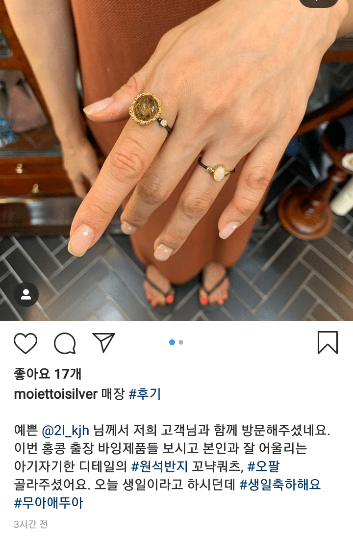 這次又被網友抓包,其實都是SNS惹得禍!網友昨晚在韓國討論區PO出一則「金材昱、李伊今日的戀情證據」,立刻引發火熱討論,討論貼文中整理了李伊在限時動態曬出的新買的戒指認證照,同時打上了「嘿嘿」字句,看起來心情很好!循線找到店家IG後,發現除了PO出李伊手戴戒指購買認證照之外,同時間另一則照片中,一名男性客人戴著戒指的手讓網友越看越眼熟…比對發現跟金材昱手的弧度、甚至手上「痣」的位置都超級神似,再度掀起熱戀說!