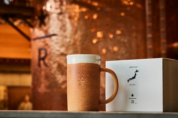 信樂燒是日本六大古窯之一,有1,200多年的歷史,星巴克第3款新品「甲賀——卯山窯 キャスク」由滋賀縣的卯山窯工匠製作,使用泥土及火焰打造出這款溫暖緋紅色馬克杯,就像星巴克中目黑店前的咖啡豆儲藏桶一樣迷人。