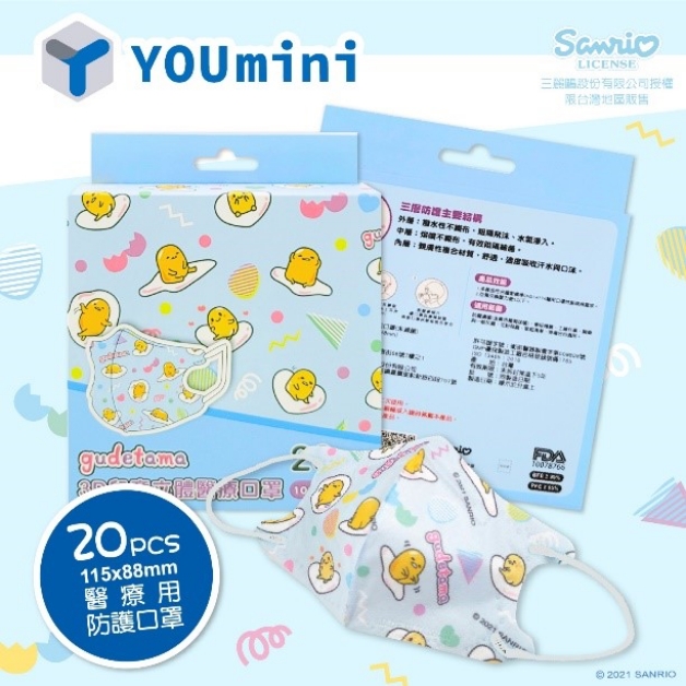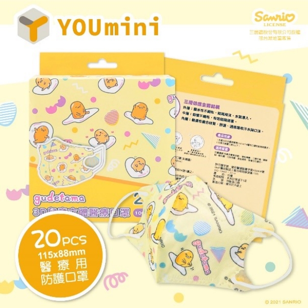 懶懶的蛋黃哥推出兒童款,共有「溫泉蛋」和「棉花糖」兩款,前者為黃底,後者為藍底,兩款都佐以蛋黃哥的插畫,立體外觀設計,不僅提升整體配戴的舒適度,彈力耳繩功能更減少長時間配戴口罩對耳朵的壓迫,如果家裡有小孩的話,推薦購買蛋黃哥系列,4月21日正式開賣!