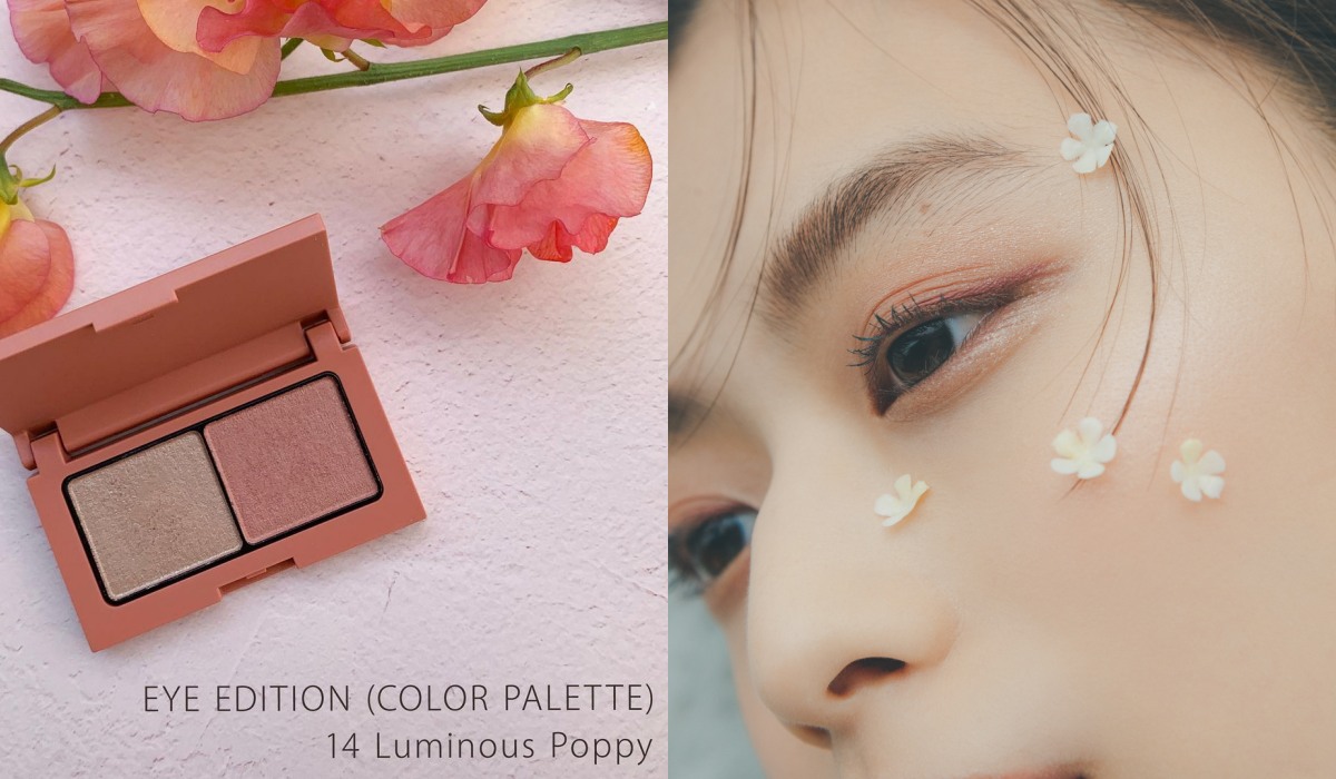 艾杜紗很受歡迎的雙色眼影「微暮絲絨雙色眼影」今年推出新色#14恬淡之櫻,以霧面的粉嫩櫻花色調,呈現溫柔清新的質感,搭配低調細緻的閃粉,異材質的相互融合,創造深邃勾人的雙眼。粉質非常的細緻潤澤,只要用手指就能輕鬆延展暈染、層層疊擦,新手也能輕鬆駕馭。