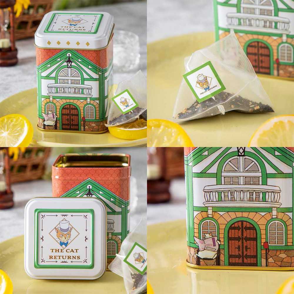 男爵的特製紅茶,現在也喝得到了!簡單風味的紅茶,帶有著淡淡的檸檬香,可以直接享用、加入檸檬,或是和小春一樣加入牛奶,都不成問題。鐵罐的四面則還原動畫中的「貓咪事務所」!除正面清晰可見的事務所外觀外,背面更呈現了它的內部裝潢,還能看見胖胖和多多的身影,而男爵也在鐵罐蓋子和茶包上登場喔~