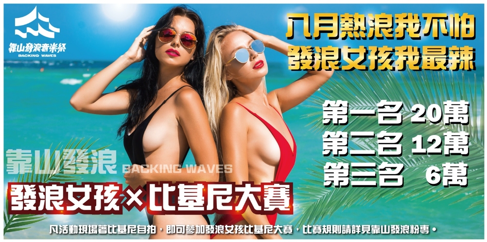 什麼? 在城市裡就可以玩水消暑!精心準備內陸水遊、人造泳池、地面滑道、噴水泡沫裝置;不止盡情戲水,更有亞洲百大DJ妖嬌和 Missa,電音律動加狂歡。營造最大的萬人比基尼派對,女性遊客穿比基尼入場,可獲得精美贈品外,比基尼大賽二十萬等你拿。