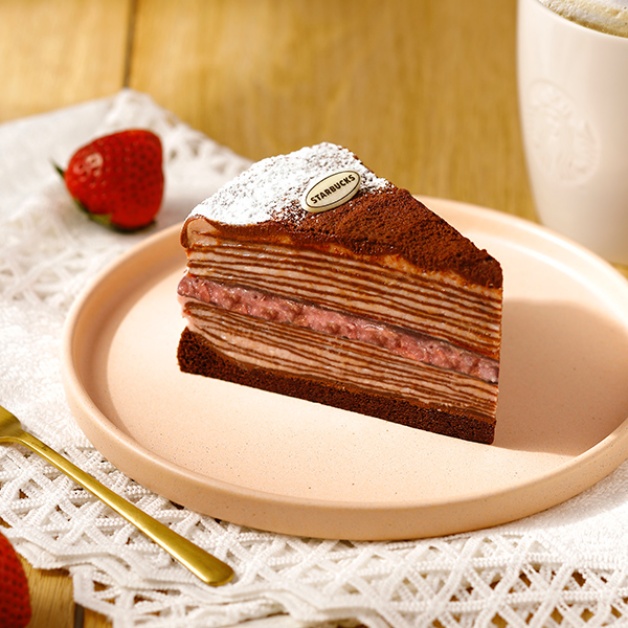 最後,星巴克也推出在地限定款「草莓可可千層薄餅」,使用巧克力薄餅,每層佐上香甜的草莓慕斯,內餡夾入含草莓果肉的草莓醬,並於上下層加入巧克力甘納許,黑中帶粉的外觀呼應BLACKPINK標誌性的色調!