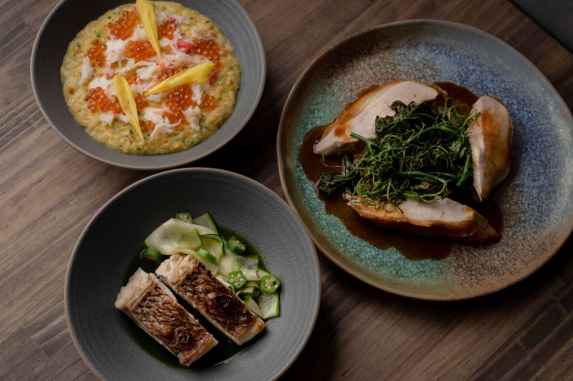肉質細膩的日本真鯛經炭烤後,表皮散發著誘人的油脂香氣與焦脆口感,搭配清甜爽口的櫛瓜和秋葵,再淋上以羽衣甘藍和魚高湯調製的醬汁,不僅提升鮮度,也增添了風味層次,最後特別搭配特製焦蔥醬,濃郁香氣中帶著淡淡苦韻,這樣的組合能更加凸顯魚肉本身的鮮甜。