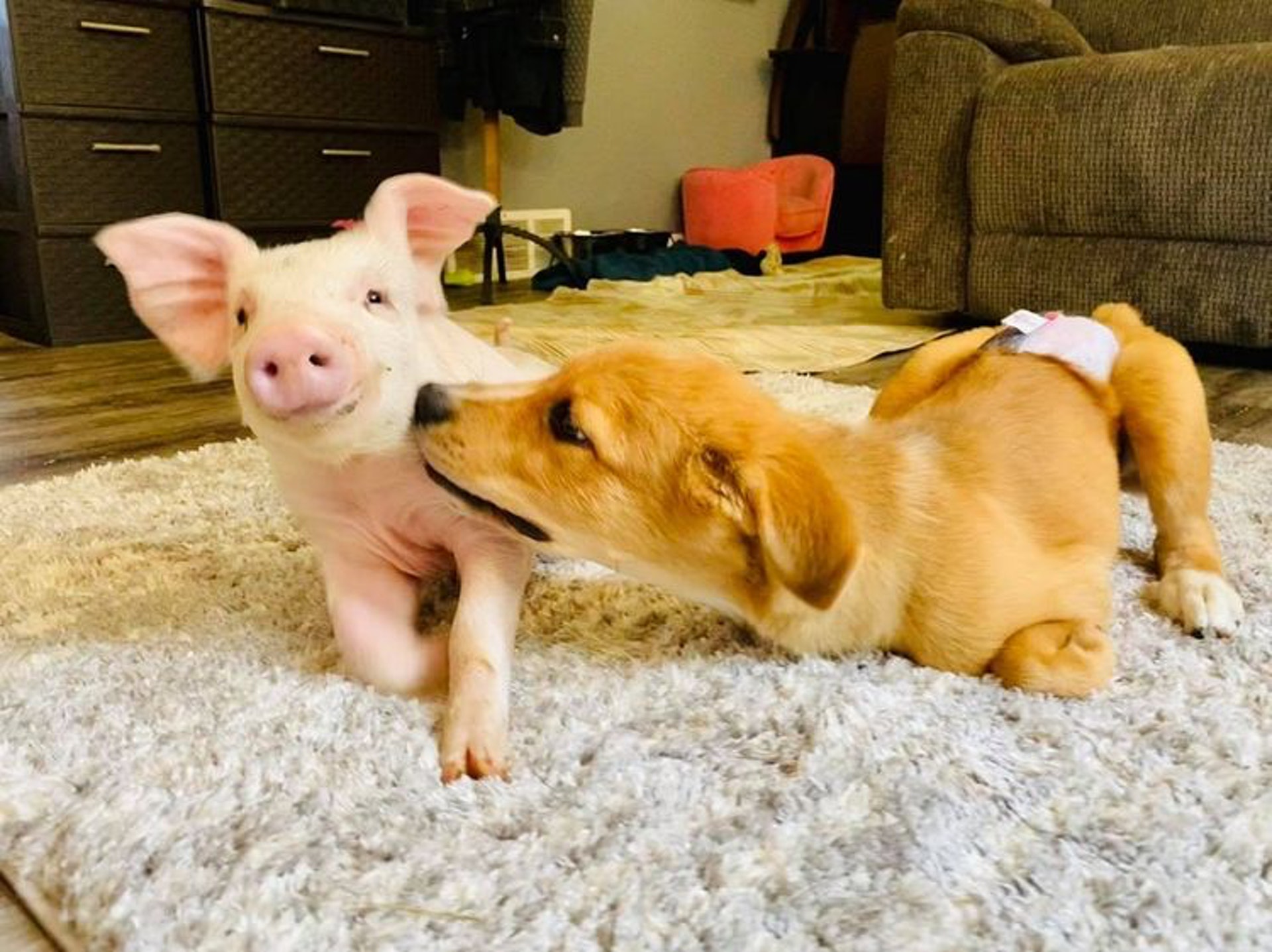 Lauren Edwards分享了一段溫馨友誼故事:「小狗Winnie因先天發育不健全沒有前肢,隨後遭到主人棄養,輾轉來到農場,而Wilma則是隻走失的迷路小豬,沒想到牠們在相遇後,竟會變得如此親密!」