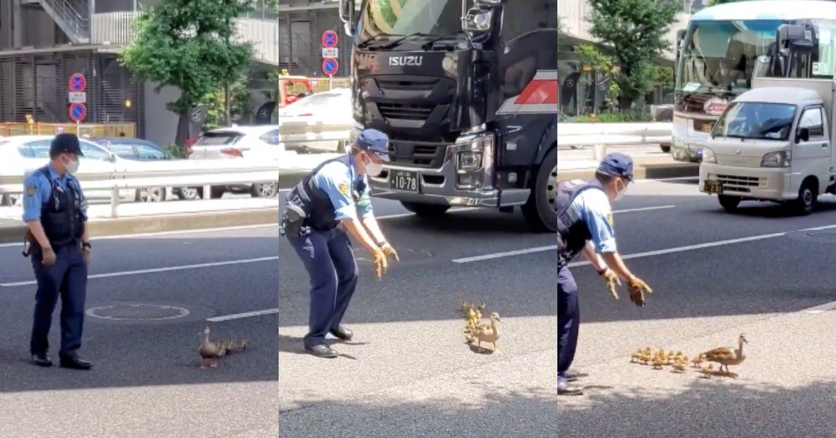 這邊很危險鴨!日本「母鴨帶小鴨」誤闖早晨尖峰馬路,警察合力彎腰趕鴨好窩心!