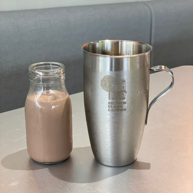 在「健康第一杯」選項中,除了基本的新鮮果汁、明日葉汁和牛奶等之外,還可加價20元升級為「巧克力豌豆艿」,一起低碳愛地球!