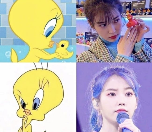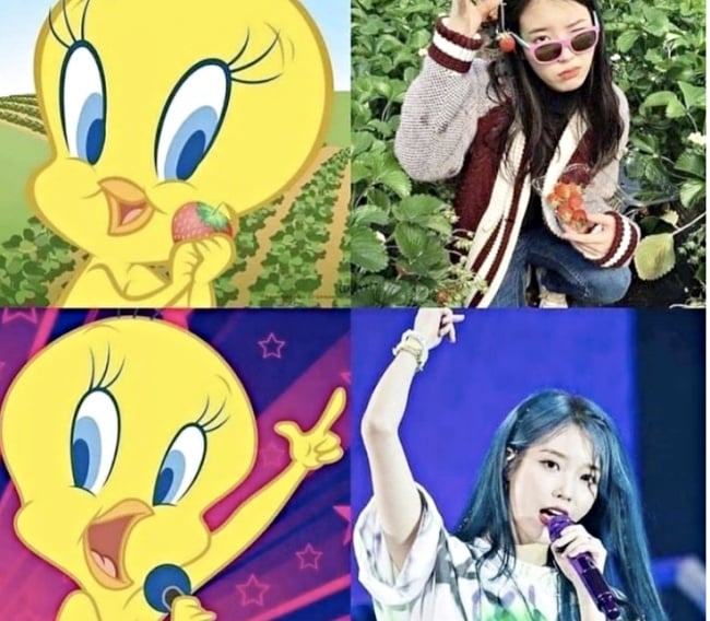 IU在最近也突然更新個人IG的大頭貼,本來就長期用崔弟圖片當做自己(?)的他,睽違5年換上了「戴著毛帽、穿上洋裝的華麗版崔弟」,疑似就是預告這次的合作,不過其實IU與崔弟的超高相似度在粉絲圈早已經不是話題,精緻小巧的五官、生動的表情與本尊不謀而合,先前就常常被網友做成比對圖瘋傳,沒想到真的跨界聯手,讓粉絲笑稱:「是本體啊!」「崔弟本鳥沒錯~」「難道染金髮是為了這個?」