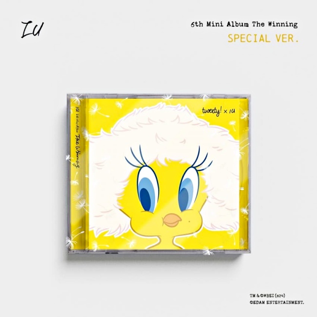 還記得去年NewJeans 與經典卡通「飛天小女警」破次元壁聯手,將成員紛紛化身Q版飛天小女警嗎?腦洞大開的創意跨界合作,堪稱是歌壇界的創舉,沒想到現在連「金絲雀」也出道了(笑)!?近日IU官方公開《The Winning》的特別版專輯封面,可以看到女神頂了金髮、戴著毛毛帽子特寫入鏡,乍看很正常,另一面居然變身成黃色的「崔弟(翠迪鳥)」了!!!