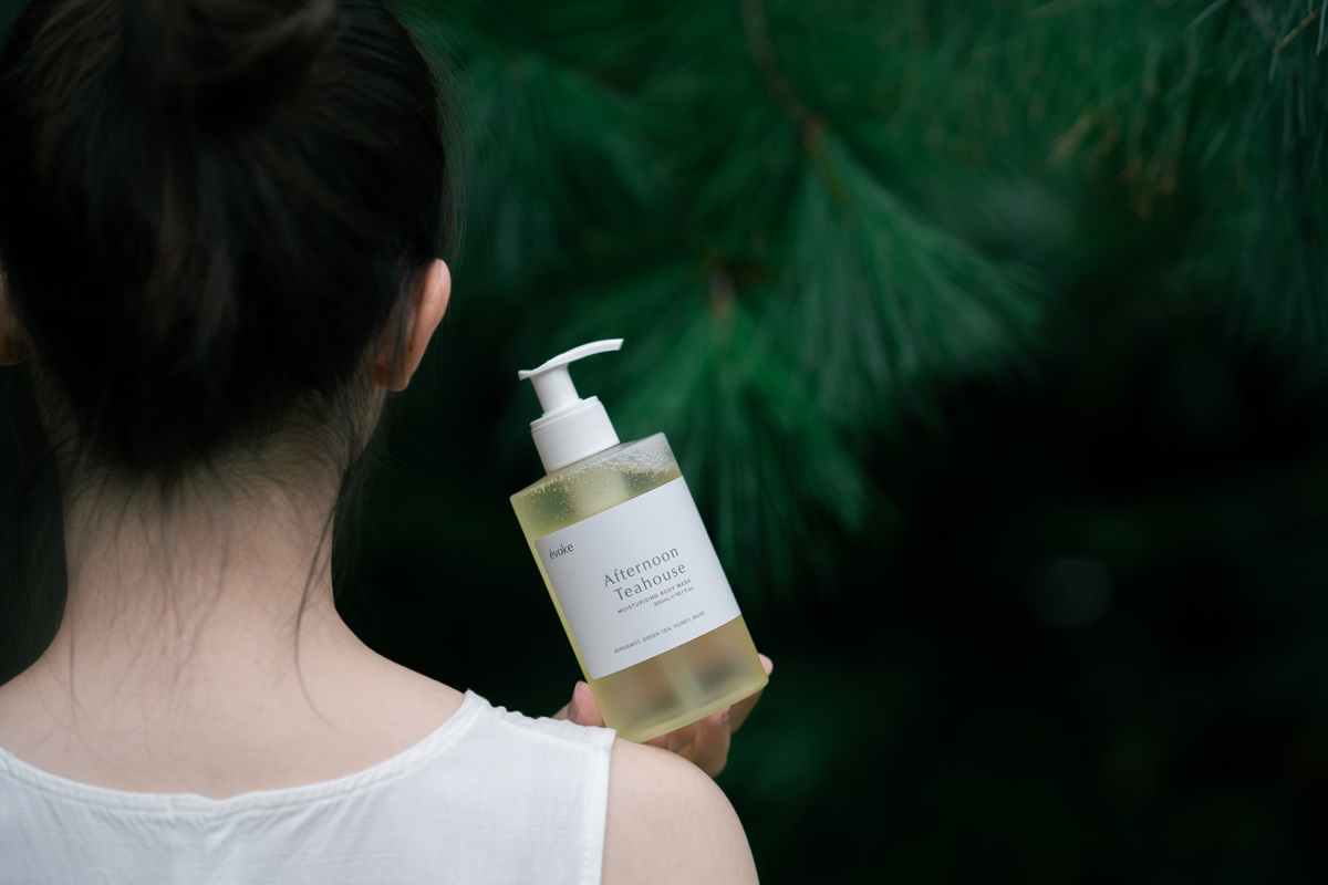 évoke醒沐以透明瓶身搭配純淨白底,印上簡約香調名,凸顯了產品的透明且簡約的風格,同時傳遞出évoke醒沐的品牌精神:沐浴雖然是日常,但也不能隨意將就,évoke醒沐提供安心且可負擔的價格,讓沐浴成為一種享受。